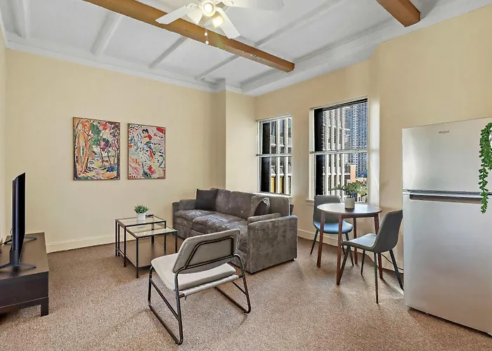 Die Unterkünfte verfügt über eine voll ausgestattete Küchenzeile mit einem Wasserkocher, einem Kühlschrank und einem Herd. Diese Unterkunft befindet sich 450 Meter von der U-Bahn-Station Clark-Division und zudem 450 Meter von der Bushaltestelle Division & Dearborn entfernt.